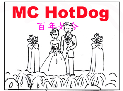 我:對阿,那你跟你家大頭還可以組成MC HotDog,你是MC,他是HotDog,我們還會幫你輸出大型背板,外加掛牆帆布,包你的婚禮與眾不同...