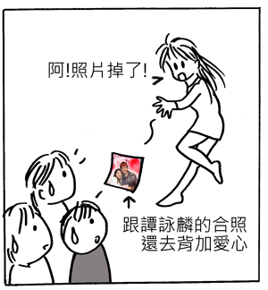 <!-- Origin Article URL: http://www.wretch.cc/blog/aquaapple/25192556 --> 改編自辦公室真實事件....<br /> <br /> 自從本人上次跑去溫拿五虎記者會,成功被我拍到跟譚詠麟的合照之後,總是千方百計要跟同事分享......<br /> <br /> 前幾天,比菜鳥更菜鳥的新同事,拿皮夾時不慎掉出一張相片.....<br><br> <a target="_blank" href="/album/show.php?i=aquaapple&b=119&f=1271124428.jpg"><img border="0" src="http://pic.pimg.tw/thunderarm/833e0d0393ec5434fe4b479e0411c98d.jpg?v=1277953633"></a><br /> <br /> <a target="_blank" href="/album/show.php?i=aquaapple&b=119&f=1271124429.jpg"><img border="0" src="http://pic.pimg.tw/thunderarm/7b765e8a31c139a53862a6a6a158b152.jpg?v=1277953634"></a><br /> <br /> <a target="_blank" href="/album/show.php?i=aquaapple&b=119&f=1271124430.jpg"><img border="0" src="http://pic.pimg.tw/thunderarm/eb46b950eacc3360f44ca314863912f4.jpg?v=1277953634"></a><br /> <br /> <a target="_blank" href="/album/show.php?i=aquaapple&b=119&f=1271124431.jpg"><img border="0" src="http://pic.pimg.tw/thunderarm/c31fd5733d4cb8afe7d0df8c15bc3e65.jpg?v=1277953634"></a>